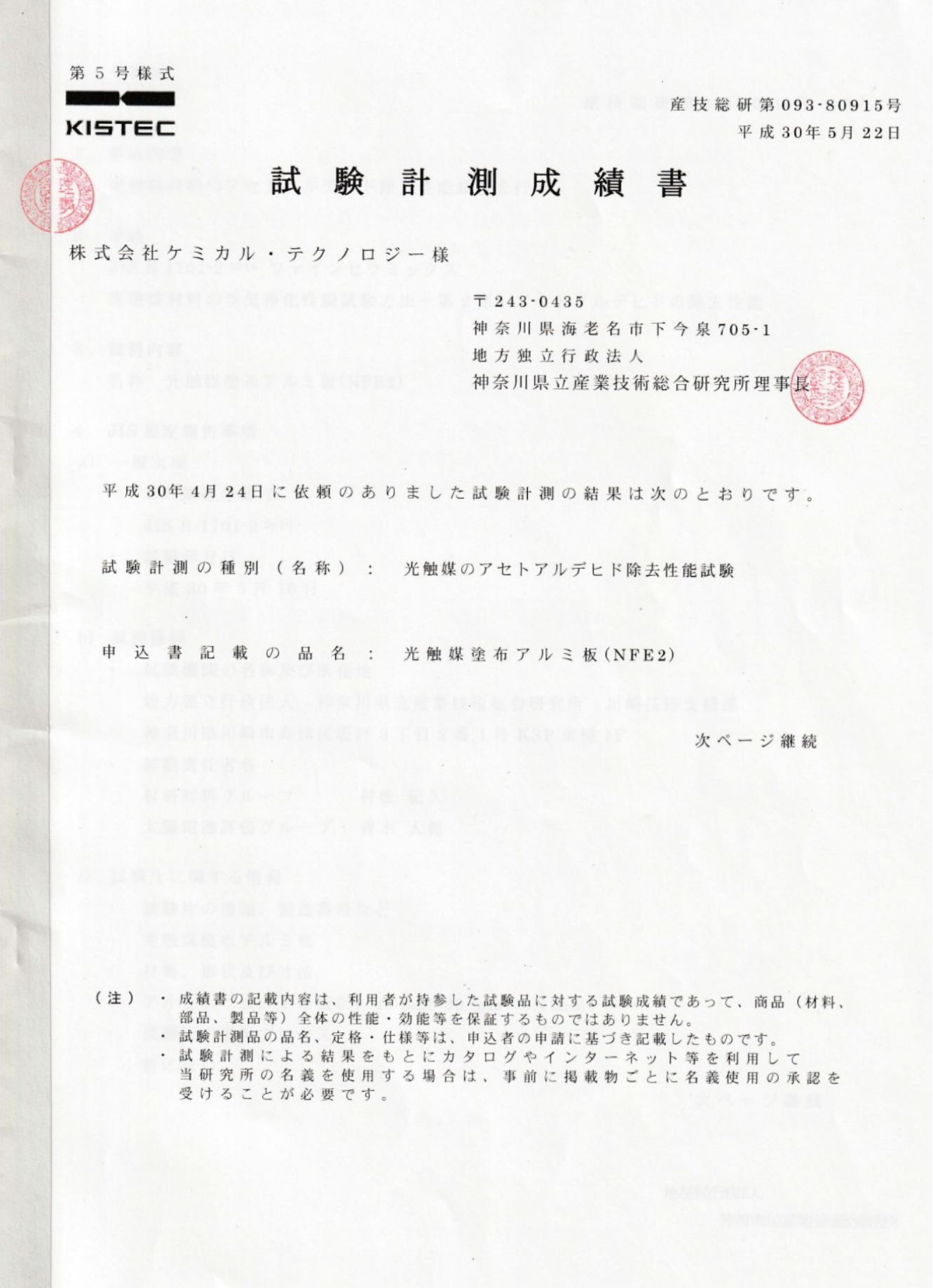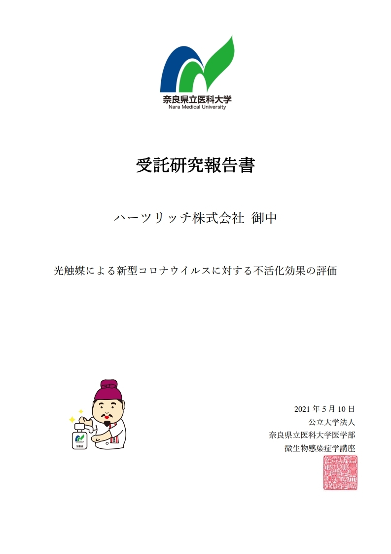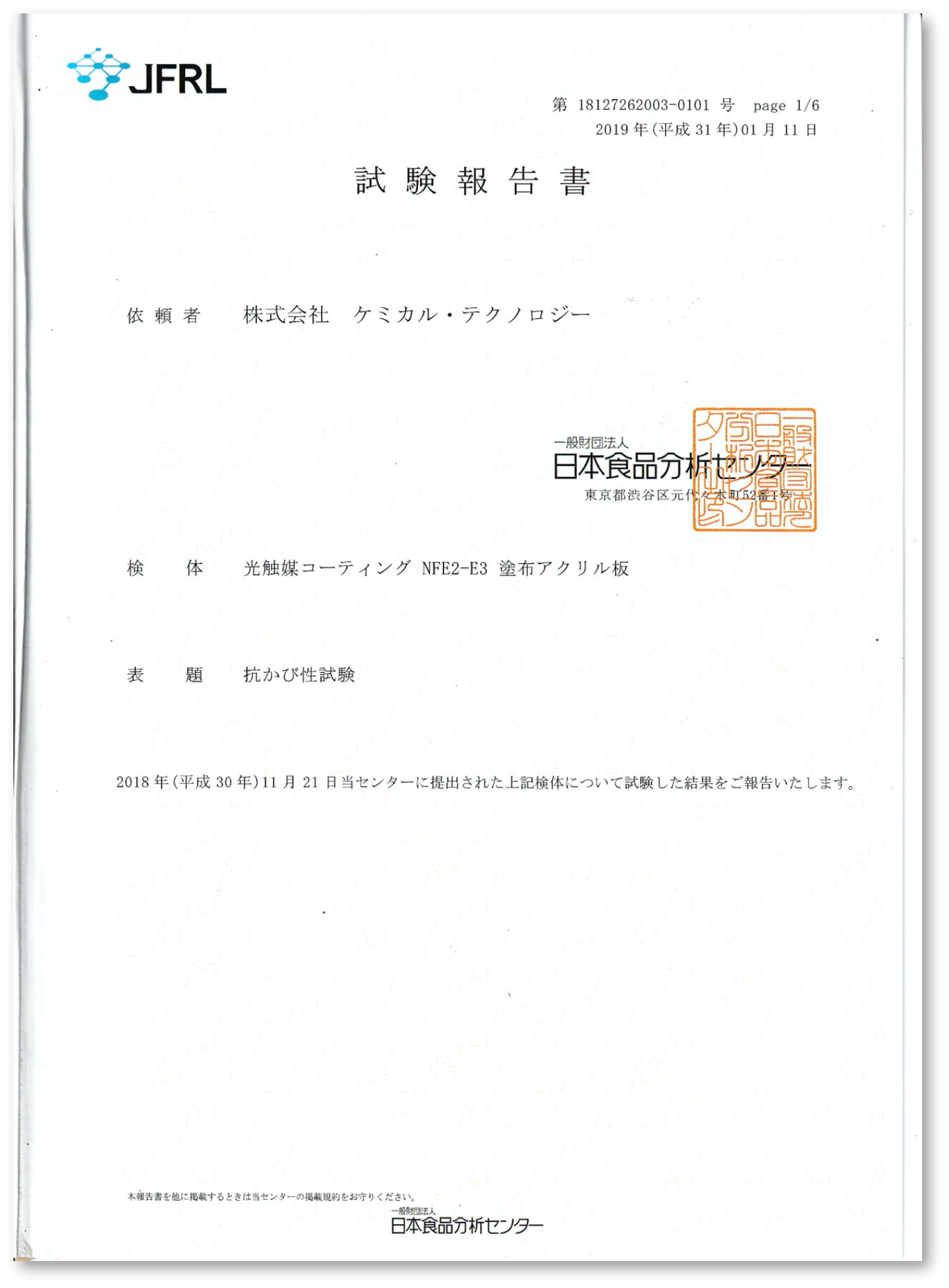 本光触媒は、3年前に光触媒と銅を添加した特許出願中の技術を応用したもので、ウイルスよりも遥かに強いカビ等への効果の発揮も日本食品分析センターにより証明されています。また、米国立アレルギー感染症研究所などのチーム論文から、ウイルスは、銅の表面に付着した場合、4時間程度の寿命であることが判明しました。光触媒と銅を組み合わせることで、除菌力は格段に効果が高まることが確認されています。その為、本光触媒は、昨今猛威をふるっているウイルス対策としても様々な分野で活用が期待できます。